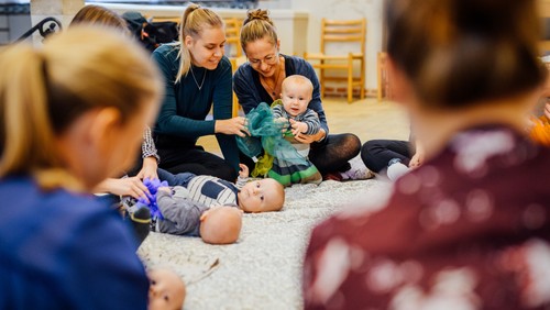 Babysalmesang er for babyer mellem ca. 2-9 måneder og deres forældre eller bedsteforældre.